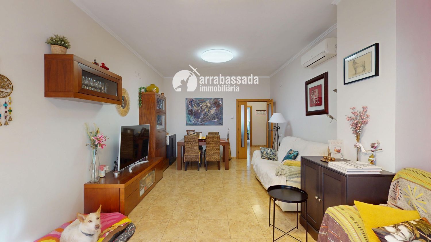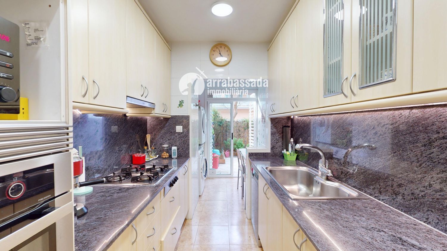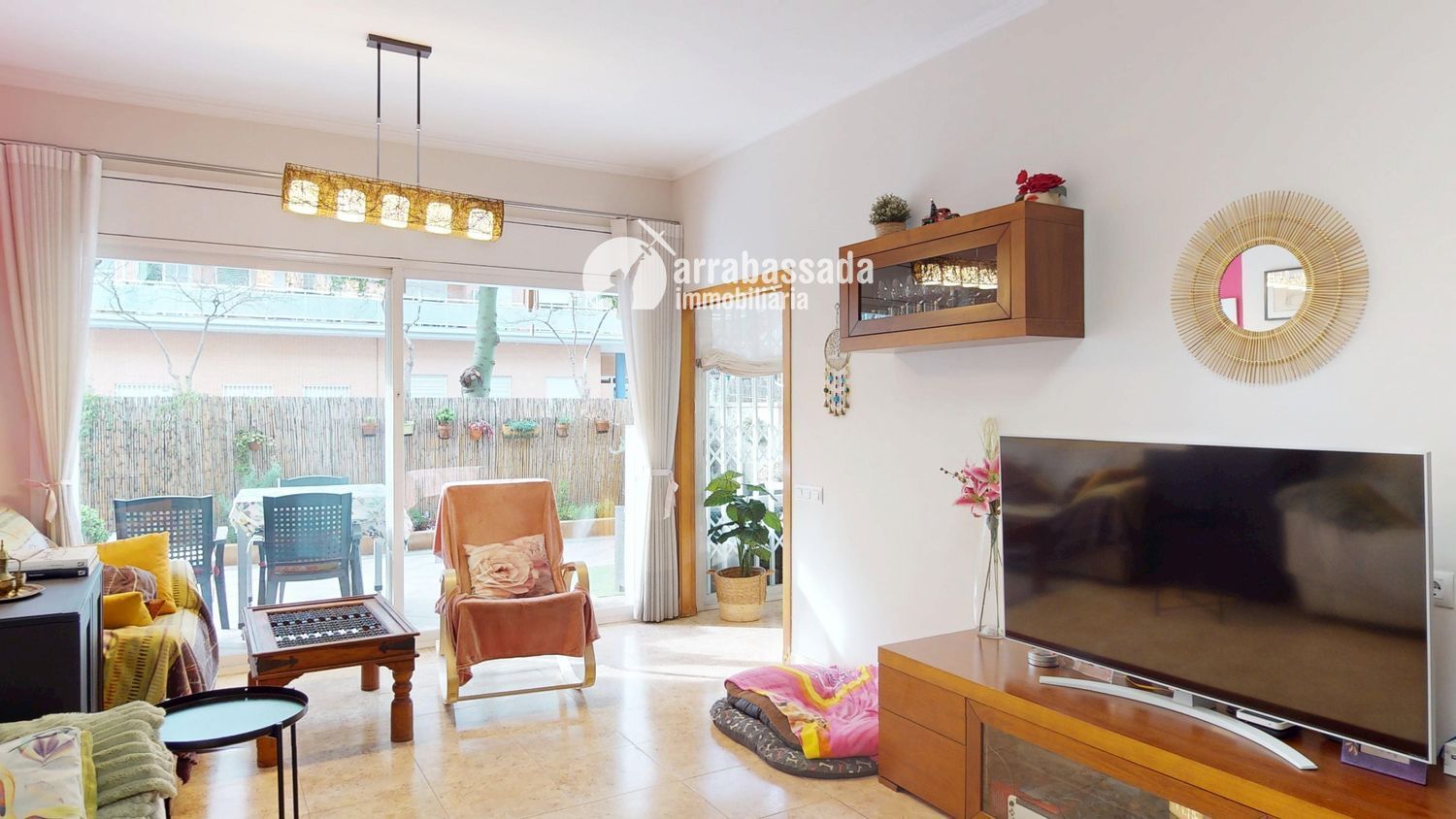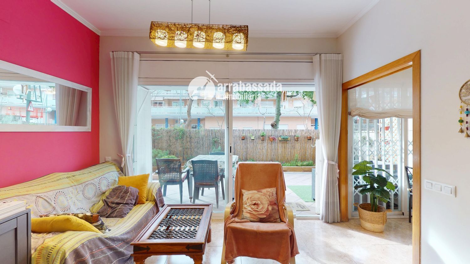 Piso de 4 habitaciones en venta en la Vall de l'Arrabassada. La vivienda tiene 115 m2 construidos y dos terrazas grandes de 73 m2 y 15 m2. El piso se sitúa en planta baja y cuenta con amplio salón comedor de 25 m2 con acceso a la terraza muy soleada que da a la calle Joan Fuster, cocina independiente de 15 m2 con galería; cuatro habitaciones, una de ellas tipo suite y dos baños completos con bañeras y segunda terraza-jardín de unos 73 m2 que da atrás y tiene vistas al monte en un entorno verde muy tranquilo. Calefacción por gas, aire acondicionado por splits, rejas de seguridad extensibles en todas las ventanas y balconeras. Estado del piso y jardín muy bueno. Orientación Este-Oeste. Plaza de parking y trastero incluidos en el precio. Ubicación muy próxima al CAP Llevant, cerca del transporte público urbano, a 5 min andando de la playa Arrabassada y de los comercios de la zona.
